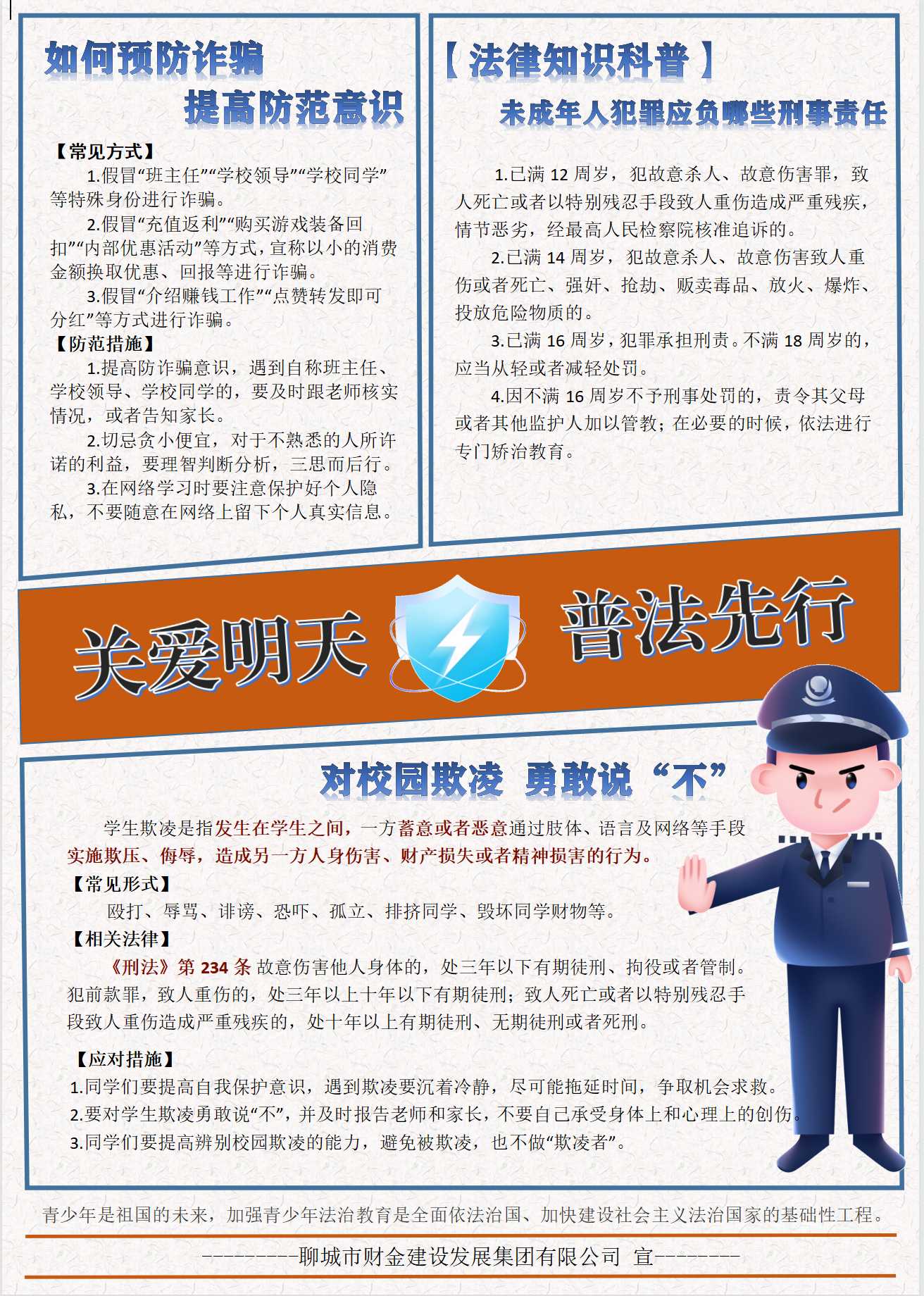 為進一步增強廣大青少年的法治觀念及法治意識,維護未成年人的合法權益,保障未成年人的健康成長,9月1日上午,財金集團共青團、關工委聯(lián)合審計法務部、黨群辦公室組織開展“為青春護航,與法治同行”青少年普法宣傳志愿服務活動。