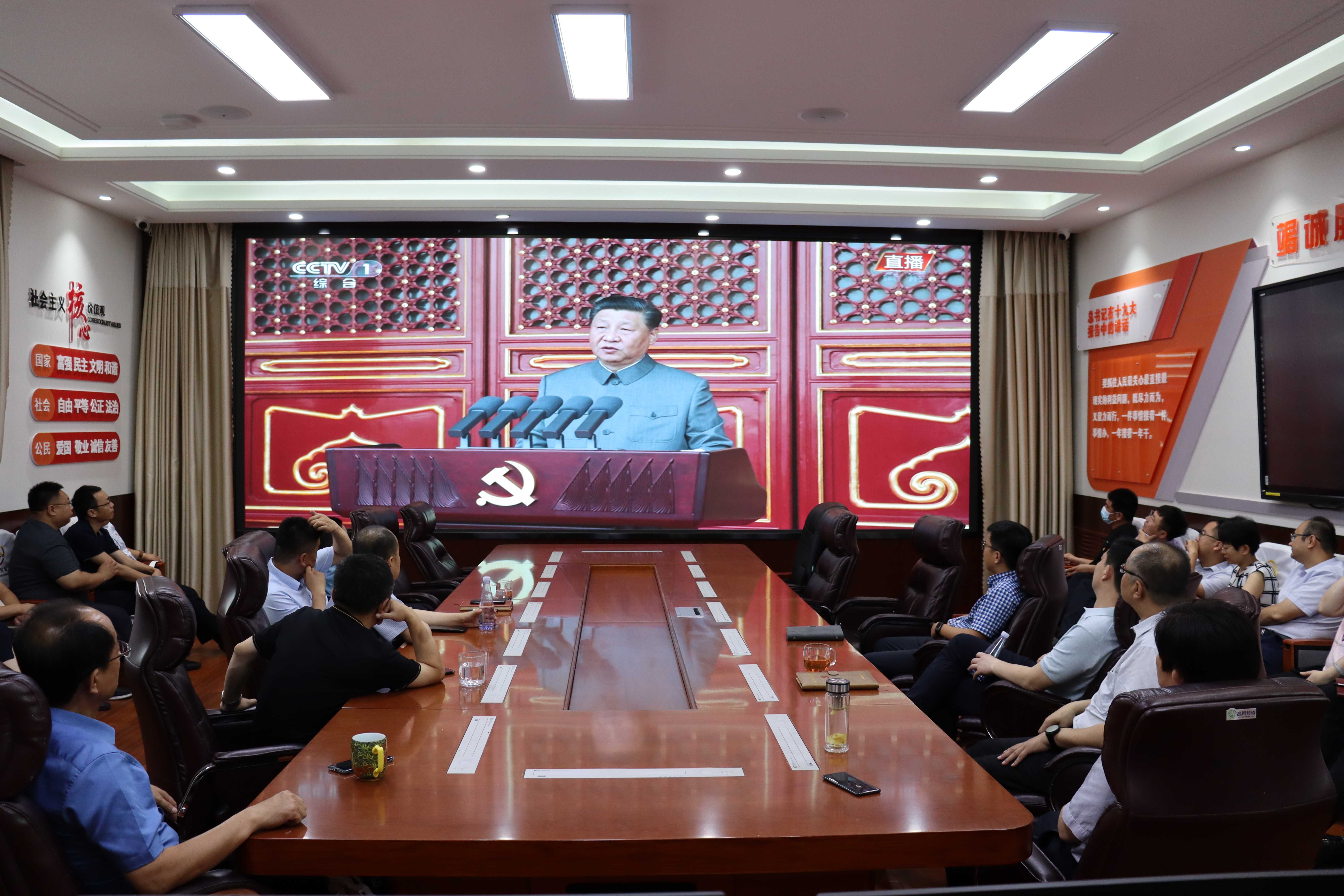 7月1日上午8時(shí),慶祝中國共產(chǎn)黨成立100周年大會在北京天安門廣場隆重舉行,中共中央總書記、國家主席、中央軍委主席習(xí)近平發(fā)表重要講話。市財(cái)金公司及各子公司組織干部職工集中觀看大會直播。