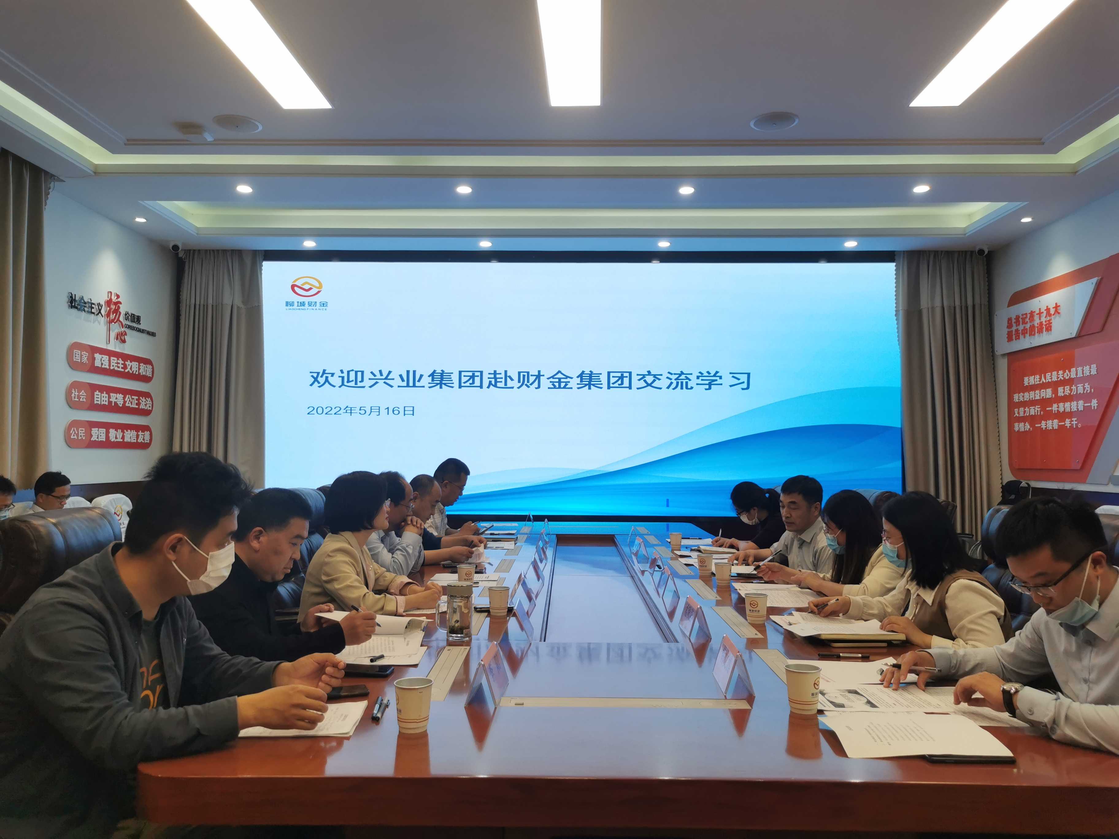 5月16日,聊城興業(yè)控股集團(tuán)副總經(jīng)理吳春光帶隊赴聊城財金集團(tuán)開展交流學(xué)習(xí)活動。財金集團(tuán)黨委副書記、董事、總經(jīng)理于雪格,副總經(jīng)理馬保強(qiáng)及相關(guān)部室、子公司負(fù)責(zé)人參加座談。